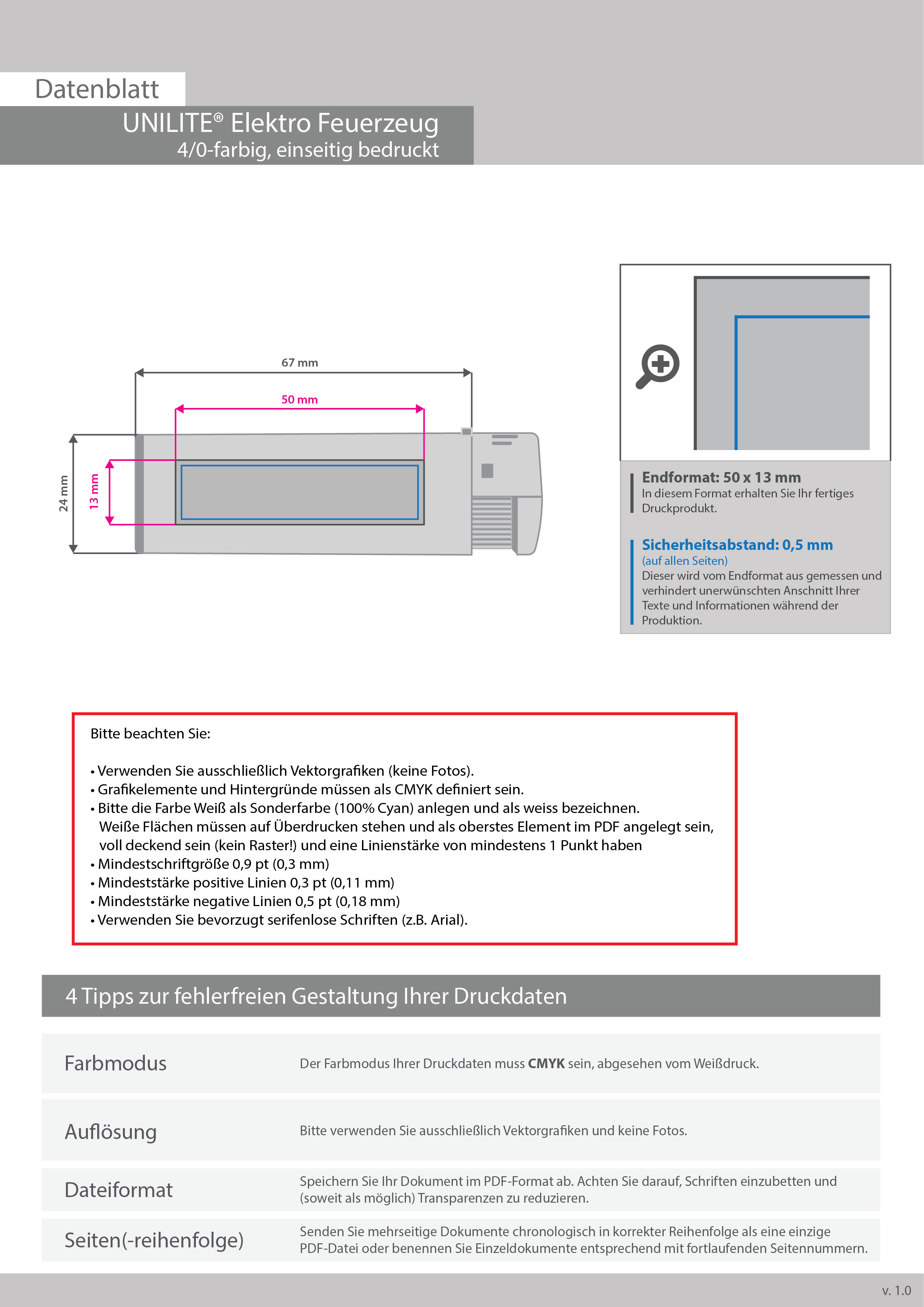 unilite®-Elektro-Feuerzeug, 4/0-farbig einseitig bedruckt