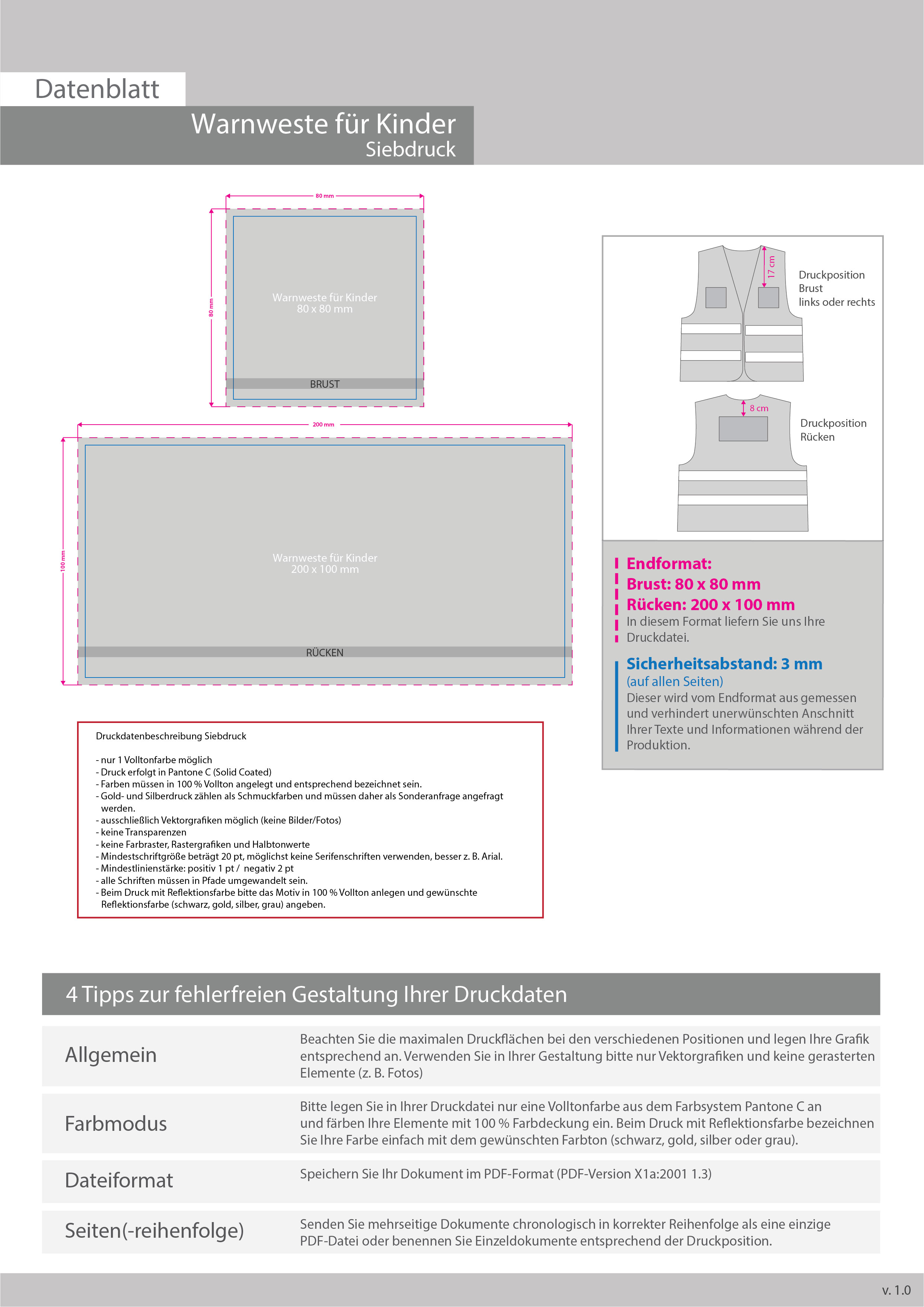 Hochwertige Kinder-Warnweste, 1-farbig, beidseitig BRUST und RÜCKEN bedruckt