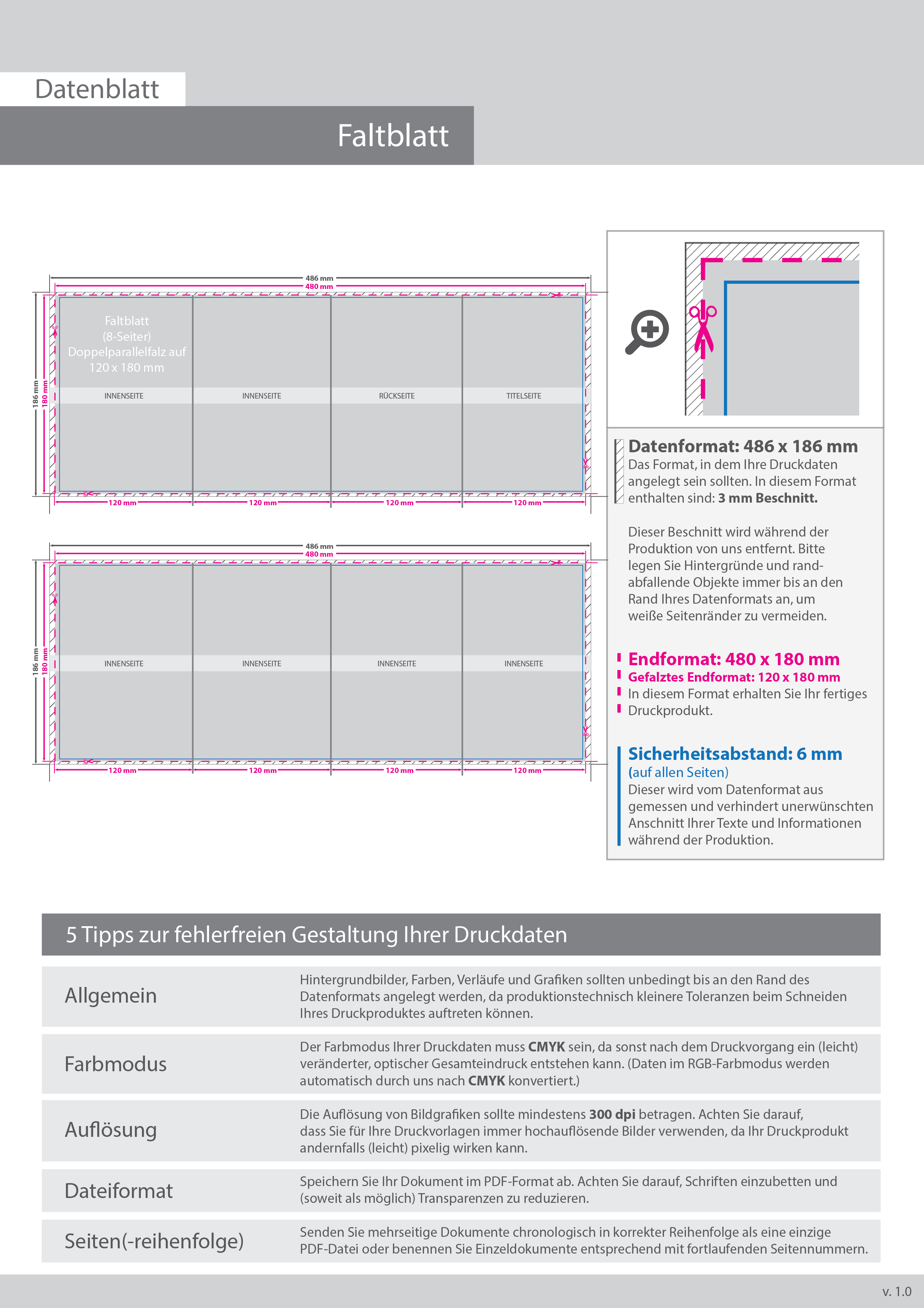 Faltblatt, gefalzt auf 12,0 cm x 18,0 cm, vertikaler Doppelparallelfalz, 8-seitig