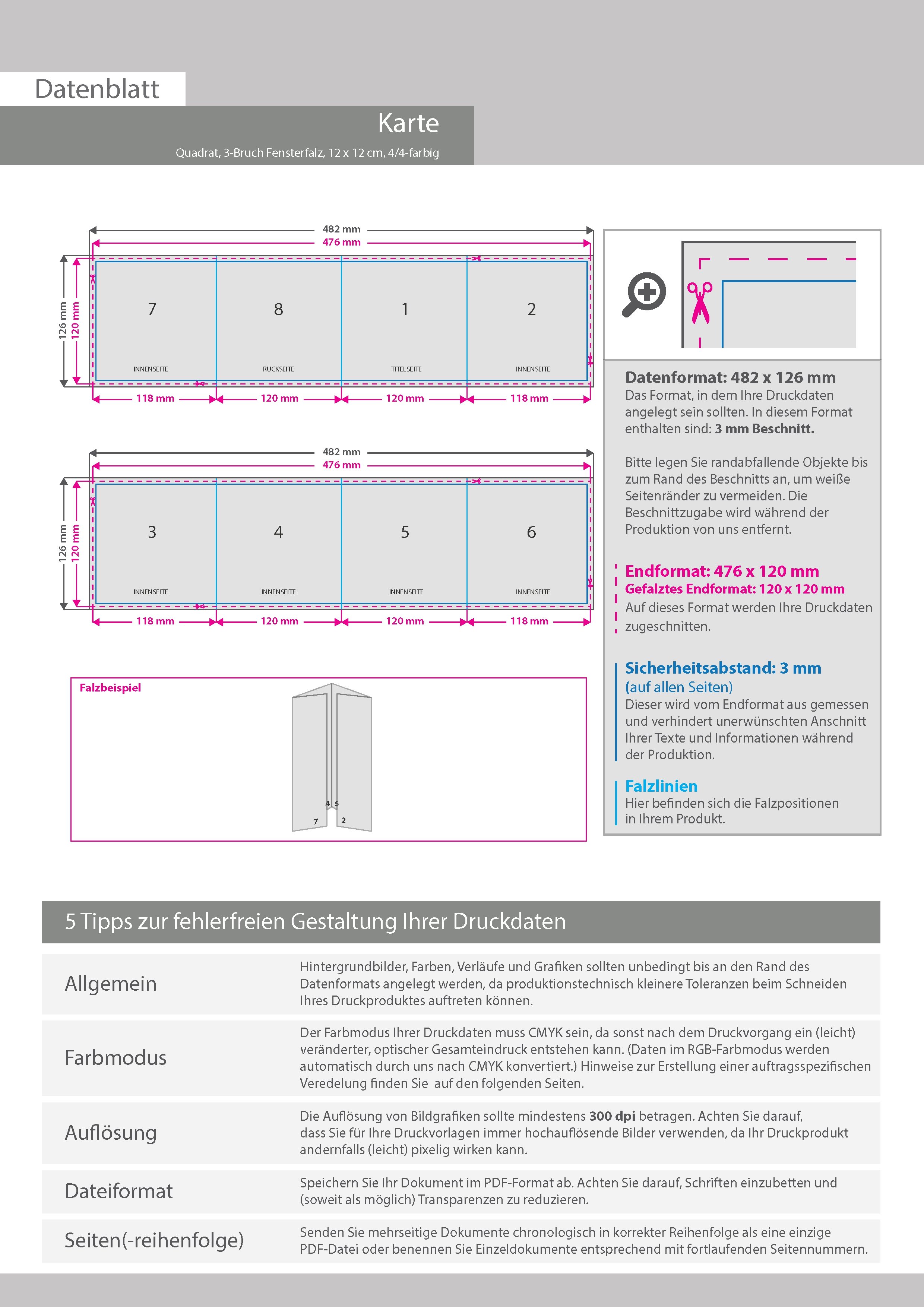 Einladungskarte, gefalzt auf Quadrat 12,0 cm x 12,0 cm, vertikaler 3-bruch Fensterfalz, 8-seitig